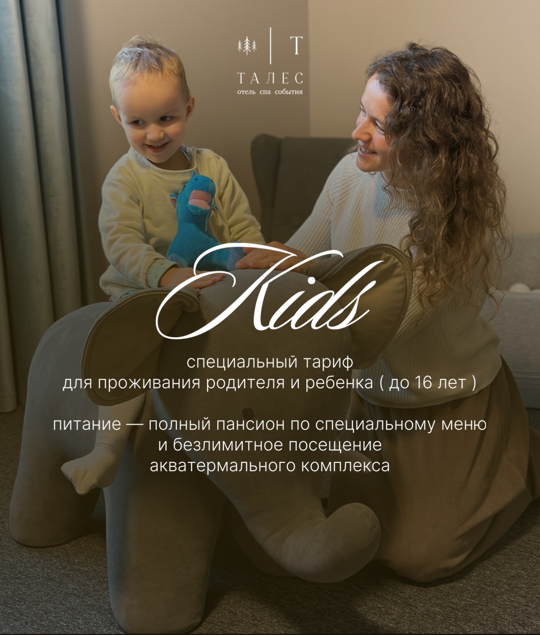 тариф для проживания родителя и ребёнка (до 16 лет) включает: